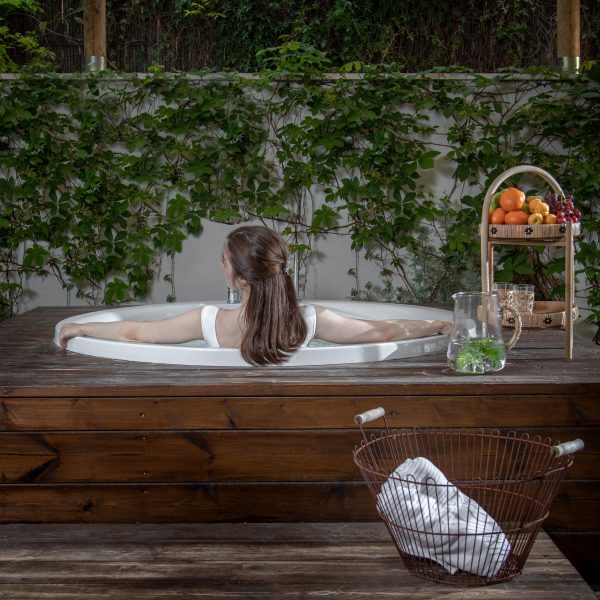 החצר הפנימית היא גן פורח ומרהיב ובה שולחנות כסאות, ערסלים ופינות מנוחה  לצד   ג'קוזי  גדול, ומבנה עץ לסאונה יבשה.וגם בית עץ קטן  ולבן בו מתקיימים טיפולי ספא.